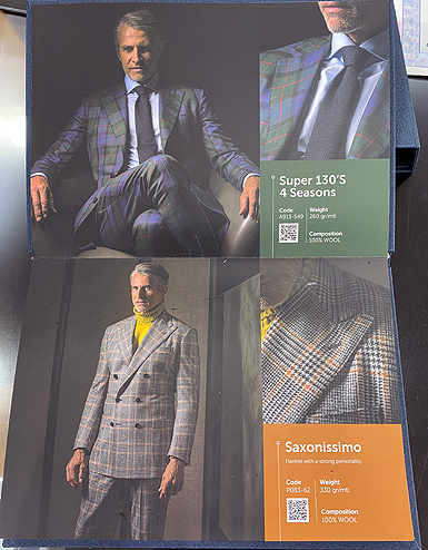 | 舶来生地使用のスーツ ¥98,000(税別)109,780(税込)〜 |